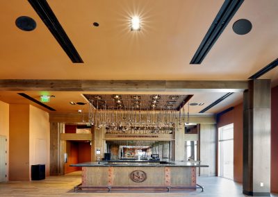 “One of the most interesting parts of this project, and most challenging, was the integration into the overall finish layout. The architect was pretty insistent on AV being as invisible as possible,” said Josh Dasher, Encore Electric Technology Solutions engineering manager. “That leads to a bunch of projectors and screens that disappear into the ceiling and speakers that are tucked away into woodwork.”