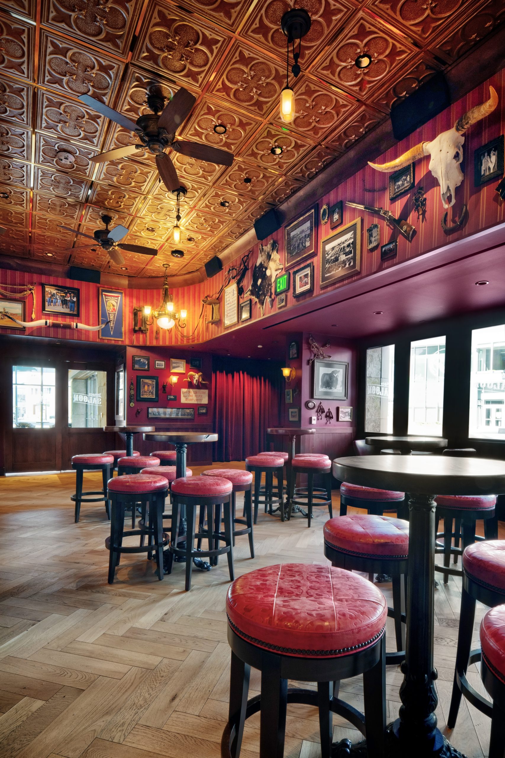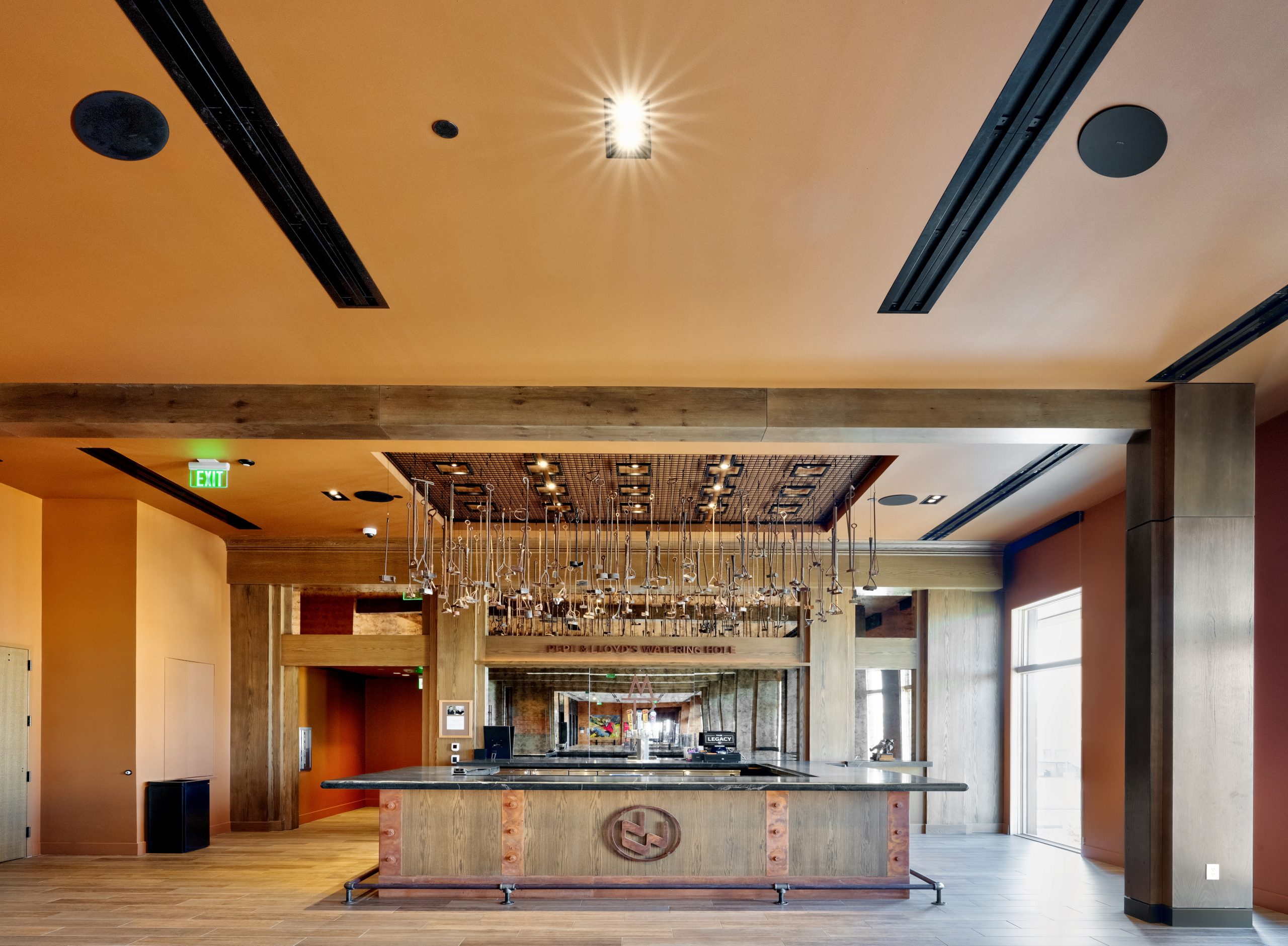 A large part of the interest in the National Western Stock Show is the history behind it, with the first event dating back to 1906. From the vintage signage that tells a story in The Legacy Saloon to the framed black and white photographs of influential stock show association members, The Legacy’s intentional design, art, and western style reflect that rich history.