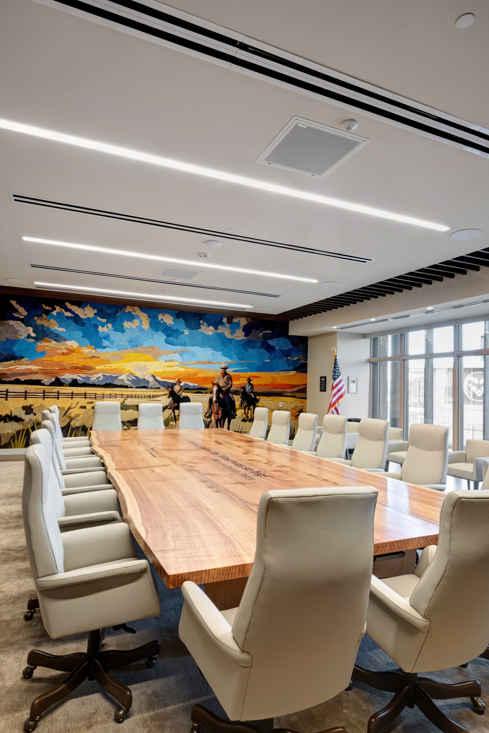 For a typical project, the Technology Solutions team will order materials from 10 to 15 different manufacturers. To successfully blend in with the western style, the team ordered from 44 different manufacturers and purchased over 500 unique AV and telecom equipment assets.